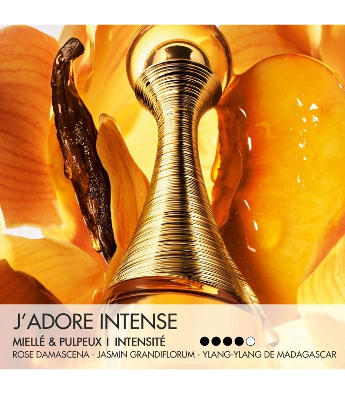 J’adore Intense de Dior est un parfum oriental floral pour femme. C’est une nouveauté. J’adore Intense a été lancé en 2026. Le nez derrière ce parfum est Francis Kurkdjian. Ses notes de tête sont l’abricot ; ses notes de cœur, l’ylang-ylang, le jasmin et la rose ; et ses notes de fond, le miel, la vanille et le santal.