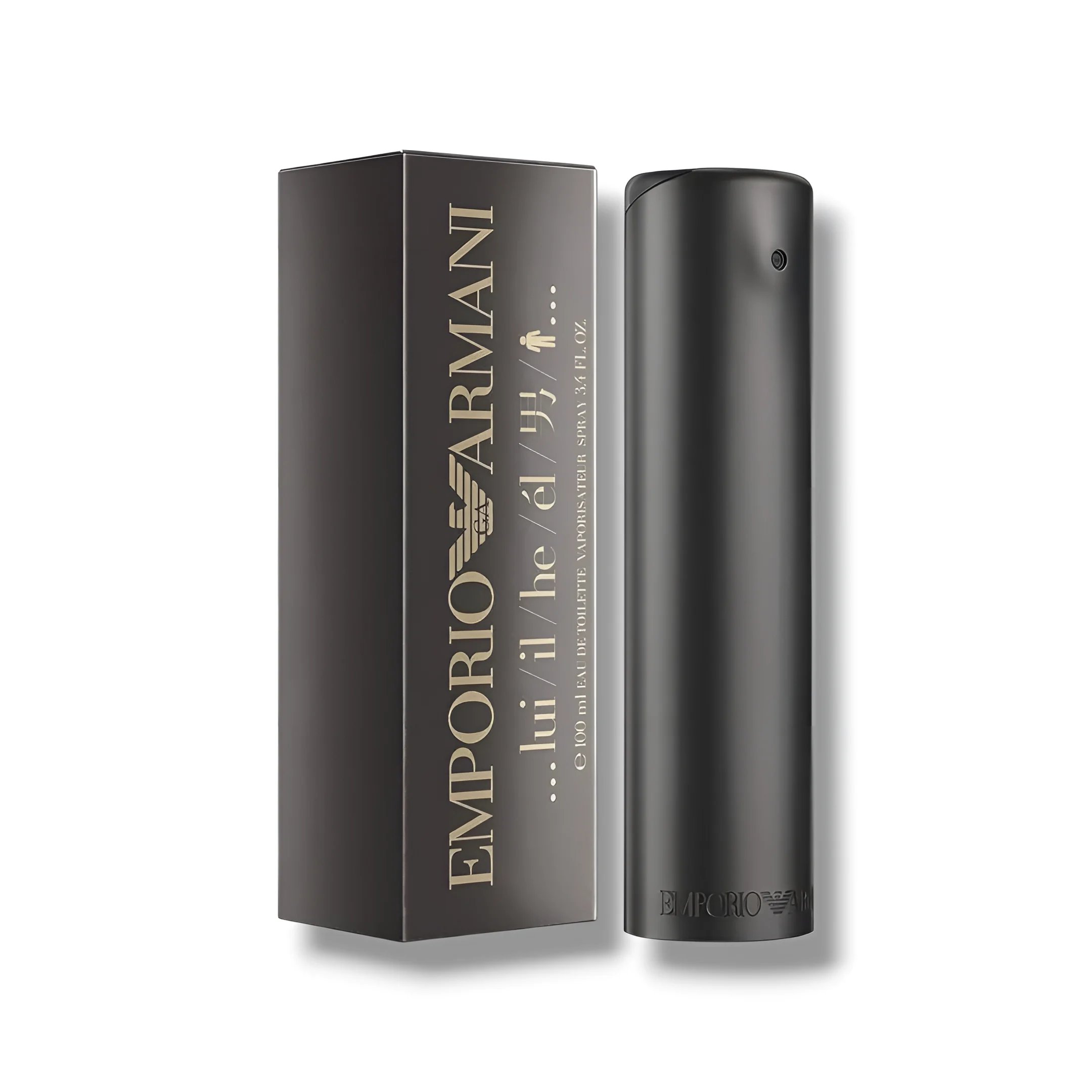 Emporio Armani He de Giorgio Armani est un parfum oriental boisé pour homme. Lancé en 2020, il a été créé par Alain Astori et Carlos Benaïm. Ses notes de tête sont le yuzu, la sauge et la cardamome ; ses notes de cœur, la noix de muscade, la racine d’iris et la rose ; et ses notes de fond, le musc blanc, le santal, le vétiver et la fève tonka.