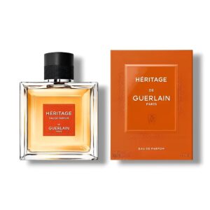 Heritage Eau de Parfum de Guerlain est un parfum boisé épicé pour homme. Lancé en 1992, il a été créé par le parfumeur Jean-Paul Guerlain. Ses notes de tête sont la lavande, les baies de genièvre, les aldéhydes, la sauge sclarée, la bergamote, le citron, la violette, des notes vertes et le petitgrain. Ses notes de cœur révèlent le patchouli, l’œillet, la racine d’iris, la coriandre, le sapin baumier, le poivre, le géranium, le poivre rose, la rose, le jasmin, le muguet et le cyclamen. Enfin, ses notes de fond se composent d’ambre, de santal, de mousse de chêne, de musc et de cèdre.