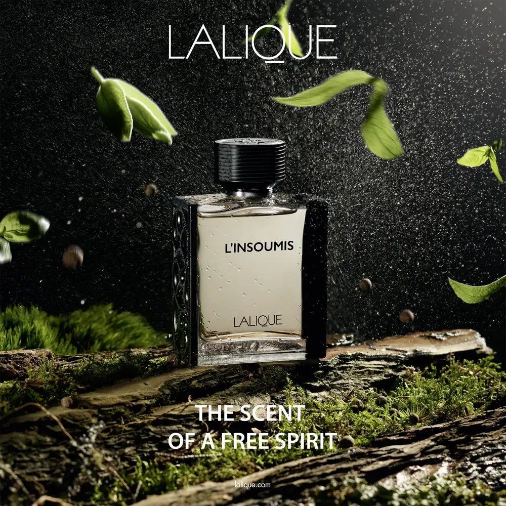L’Insoumis de Lalique est un parfum aromatique boisé pour hommes. L’Insoumis a été lancé en 2016. Le nez derrière ce parfum est Fabrice Pellegrin. Les notes de tête sont basilic, rhum et bergamote ; les notes de milieu sont Clary Sage, Lavender et Black Pepper ; les notes de base sont Woody Notes, Haitian Vetiver, Patchouli et Moss.
