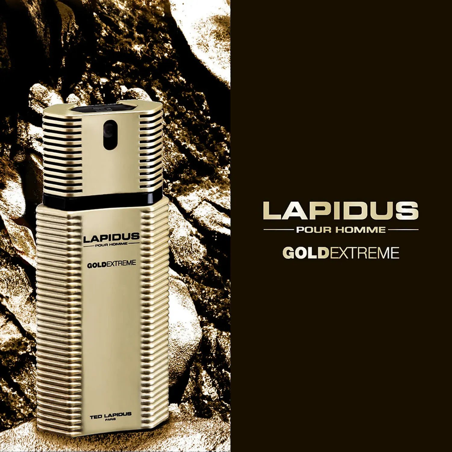 Lapidus Pour Homme Gold Extreme de Ted Lapidus est un parfum oriental épicé pour homme. Lancé en 2015, il s’ouvre sur des notes de tête de poivre rose, de pamplemousse rose et de cardamome. Son cœur révèle des notes de cannelle, de clou de girofle, d’orange et de noix de muscade, tandis que son fond se compose de vanille, de cuir, d’ambre et de vétiver.