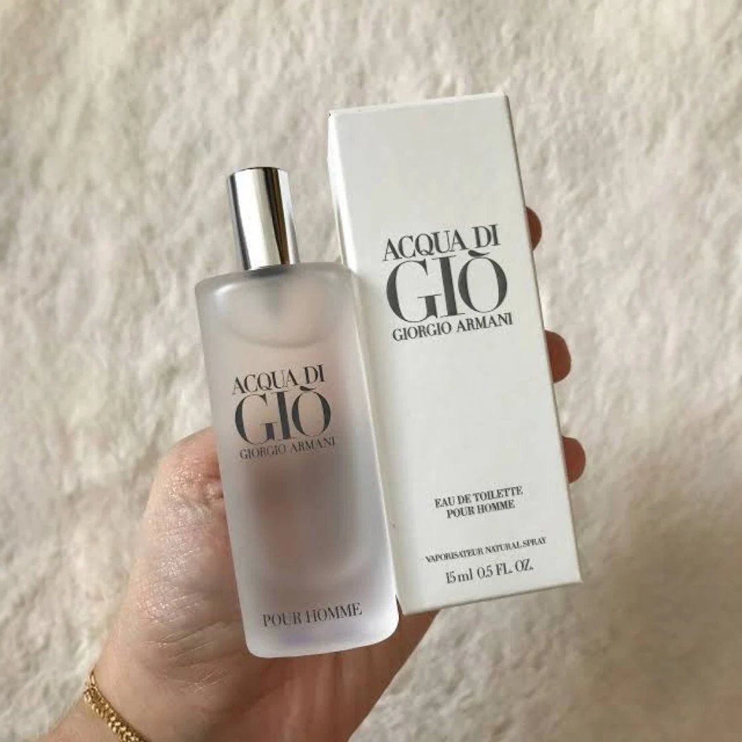 Acqua di Gio de Giorgio Armani est un parfum aromatique aquatique pour homme. Lancé en 1996, il a été créé par Alberto Morillas, Annick Menardo et Christian Dussoulier. Ses notes de tête sont le citron vert, le citron, la bergamote, le jasmin, l’orange, la mandarine et le néroli. Ses notes de cœur révèlent des notes marines, du jasmin, du calone, du romarin, de la pêche, du freesia, de la jacinthe, du cyclamen, de la violette, de la coriandre, de la rose, de la noix de muscade et de la réséda. Enfin, ses notes de fond se composent de musc blanc, de cèdre, de mousse de chêne, de patchouli et d’ambre.