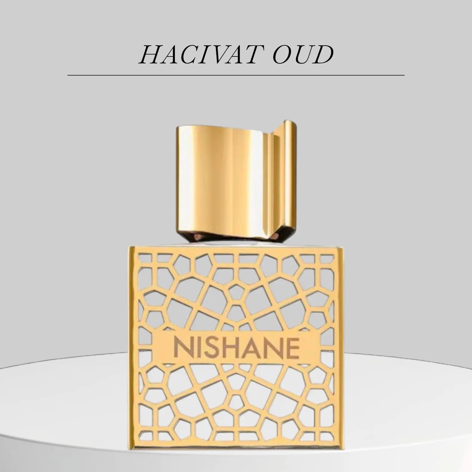 Hacivat Oud de Nishane est un parfum unisexe. Lancé en 2023, il a été créé par le parfumeur Dominique Ropion. Ses notes de tête sont l’ananas, les agrumes, le poivre noir et le poivre rose ; ses notes de cœur, l’encens, l’oliban et le jasmin ; et ses notes de fond, le oud, le patchouli, le vétiver d’Haïti et la vanille.