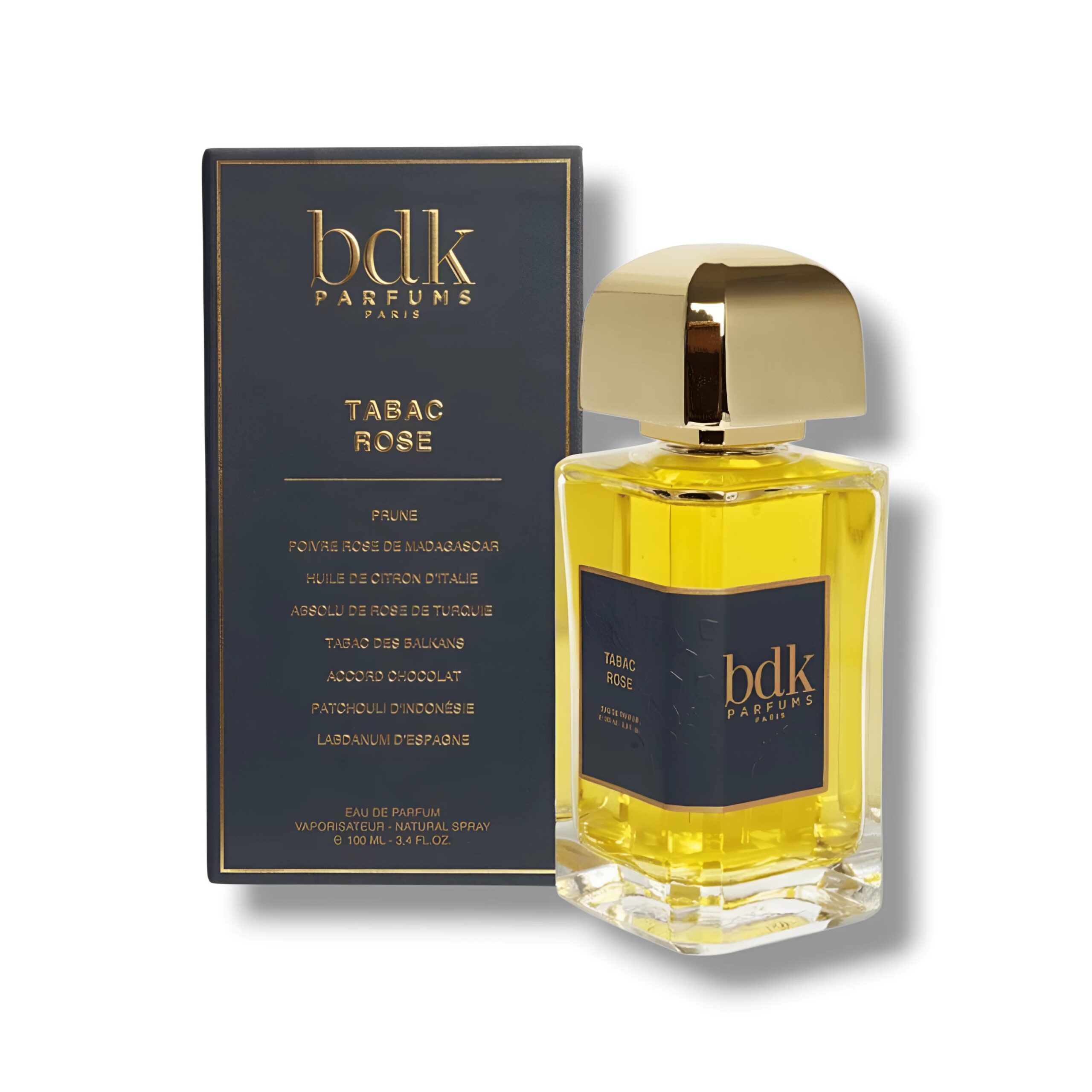 Tabac Rose de BDK Parfums est un parfum Orientale Épicé pour homme et femme. Tabac Rose a été lancé en 2020. Le nez derrière ce parfum est Julien Rasquinet. Les notes de tête sont Prune, Poivre rose et Citron d’Italie; les notes de coeur sont Rose de Turquie, Chocolat et Cannelle; les notes de fond sont Tabac, Feuille de patchouli d’Indonésie et Ciste d’Espagne